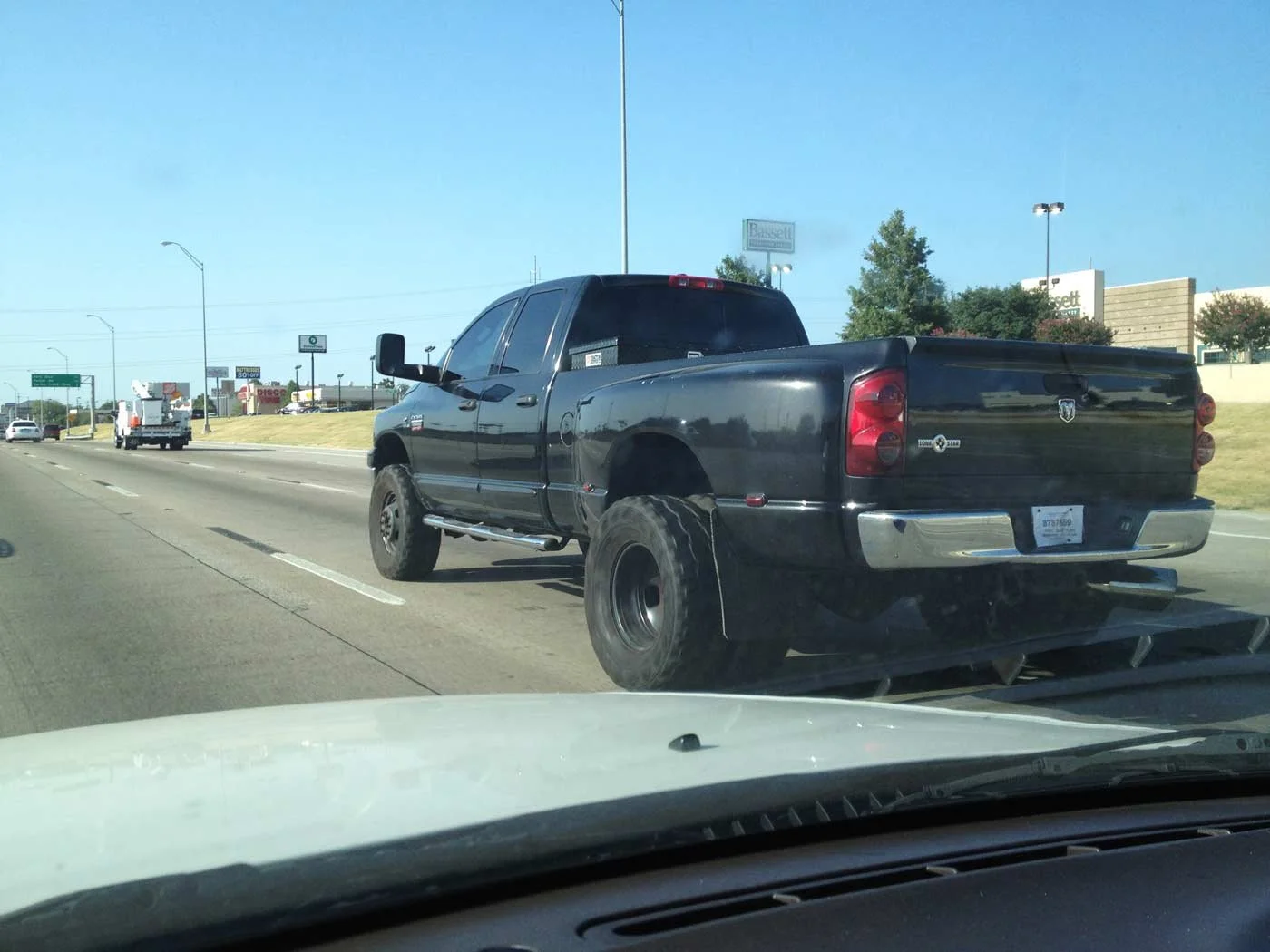 Went to go hang out with a friend to cook and watch some movies. I saw this on the way. I wish my windshield was cleaner, but I was thinking what does this girl tow or haul to have a lifted dually. Yes it was a woman driving.