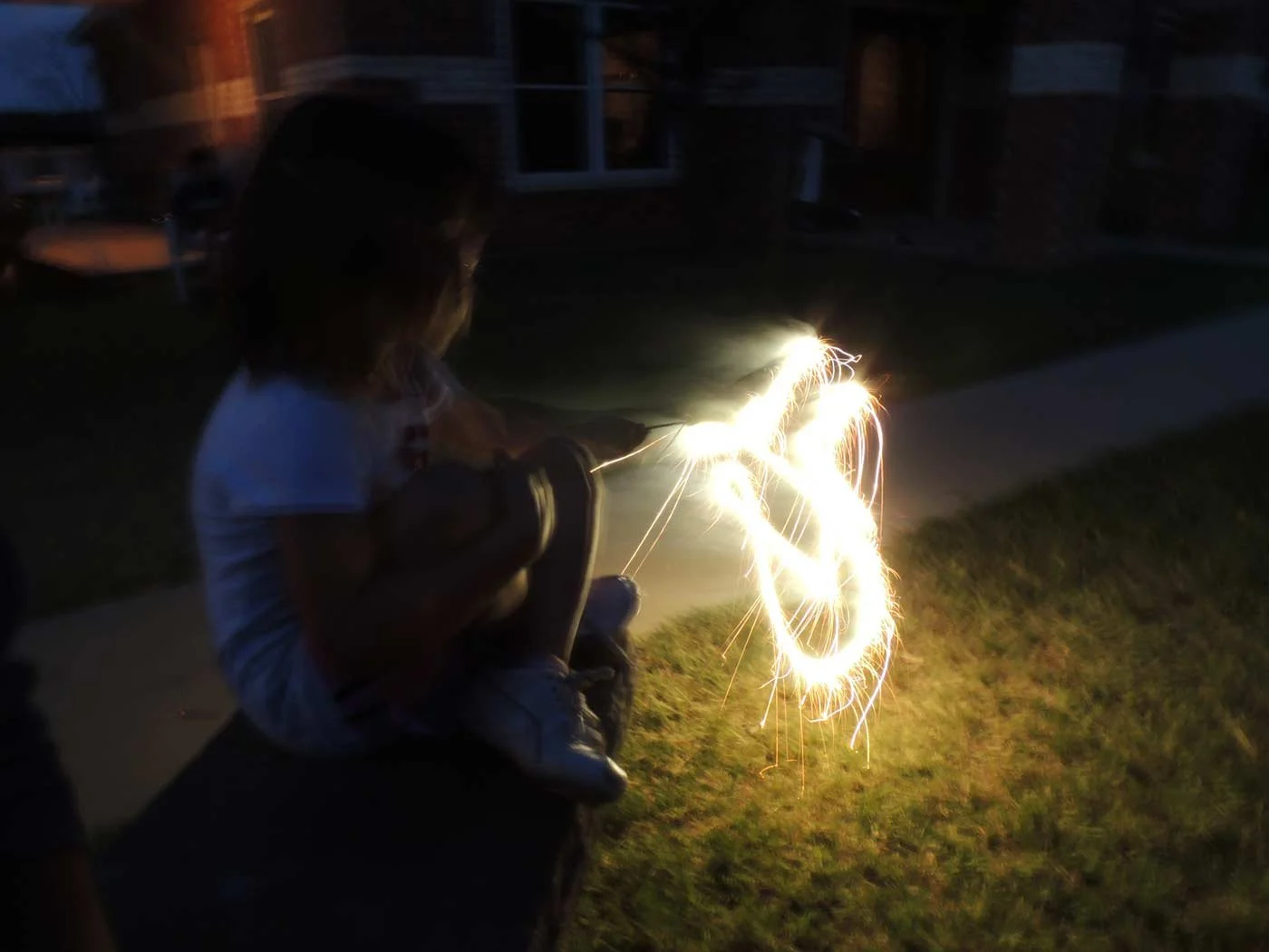 This is one of the kids at my brother's 4th of July bbq. She was so cute. She kinda looked like Boo from Monsters Inc. She had a really long sparkler that was almost as tall as she was.