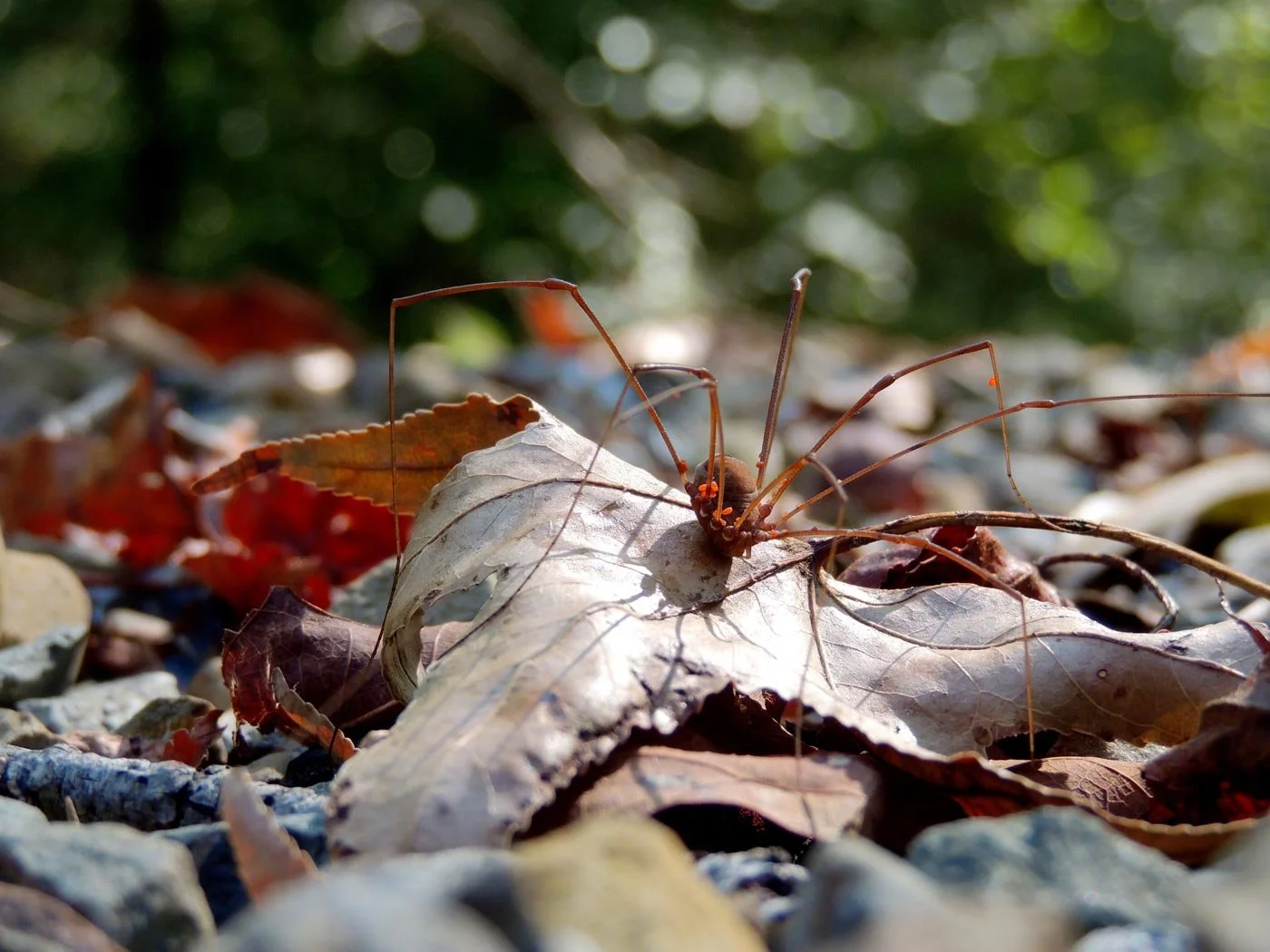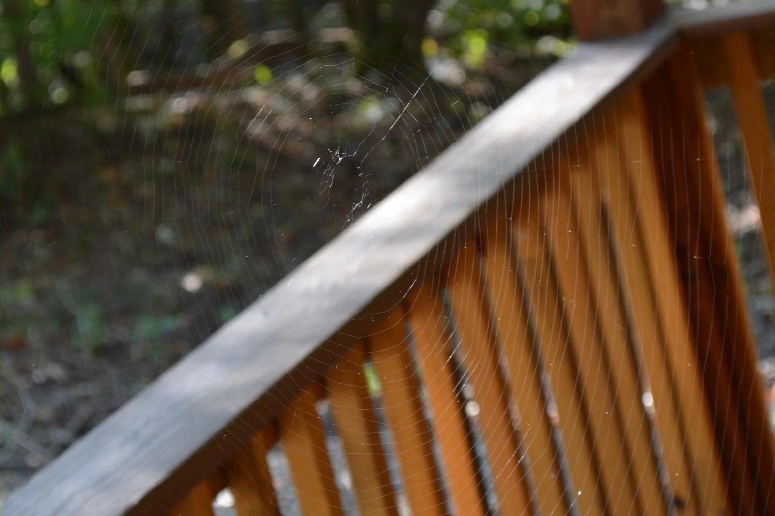 The cabin had a wrap around porch that was nice. A lot of this porch had some wrap around spider webs too. Some of the spiders, like this one, were more talented than others. There were some, based on their web skills, that were clearly abusing drugs.