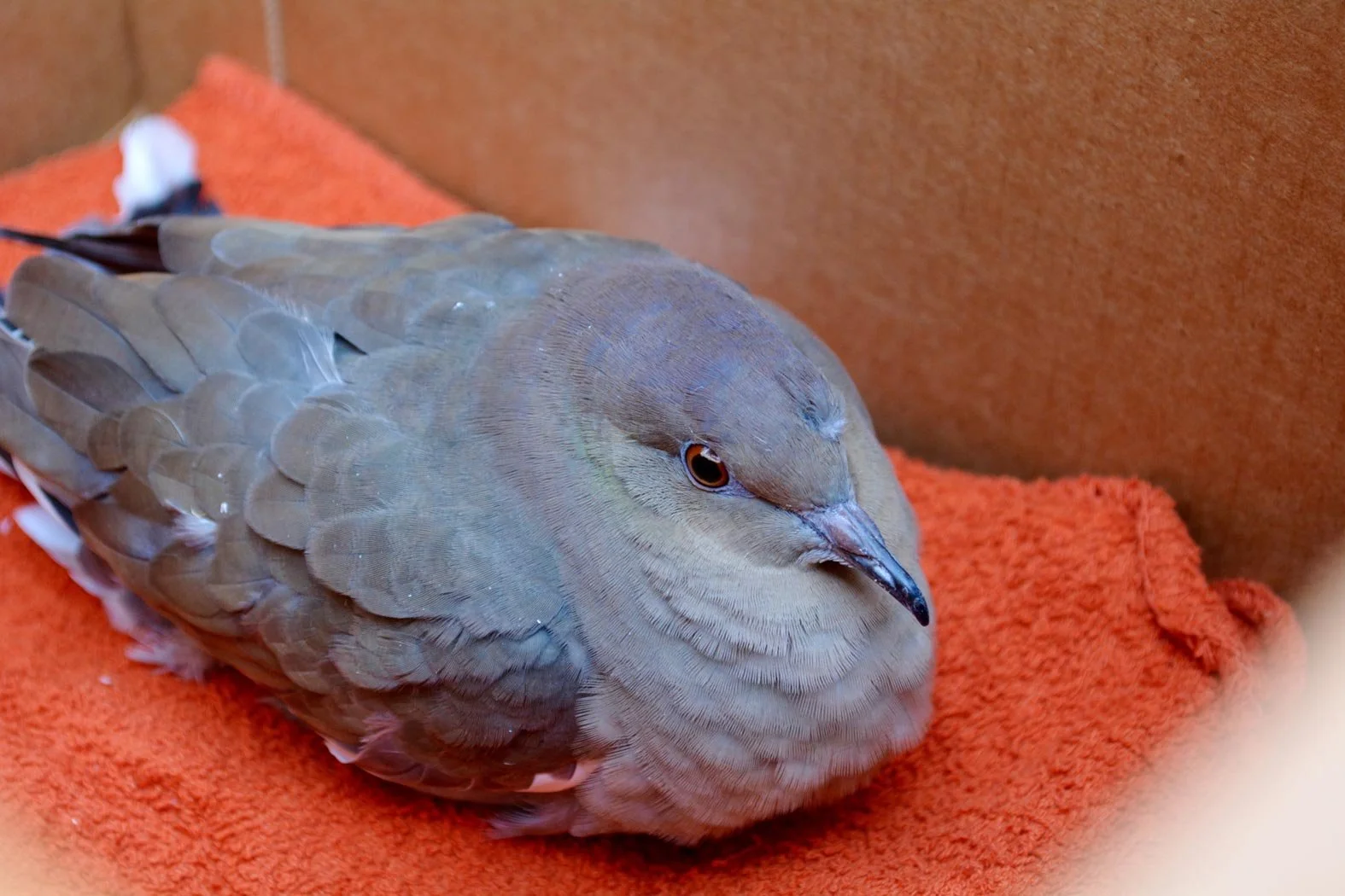 This guy spent the morning on the sidewalk outside the office. Some of us in the office decided to rescue him. He didn't make it easy. I had to crawl into the the middle of the shrubs to catch him. We got good news, once his tail feathers grow back he's expected to make a full recovery.