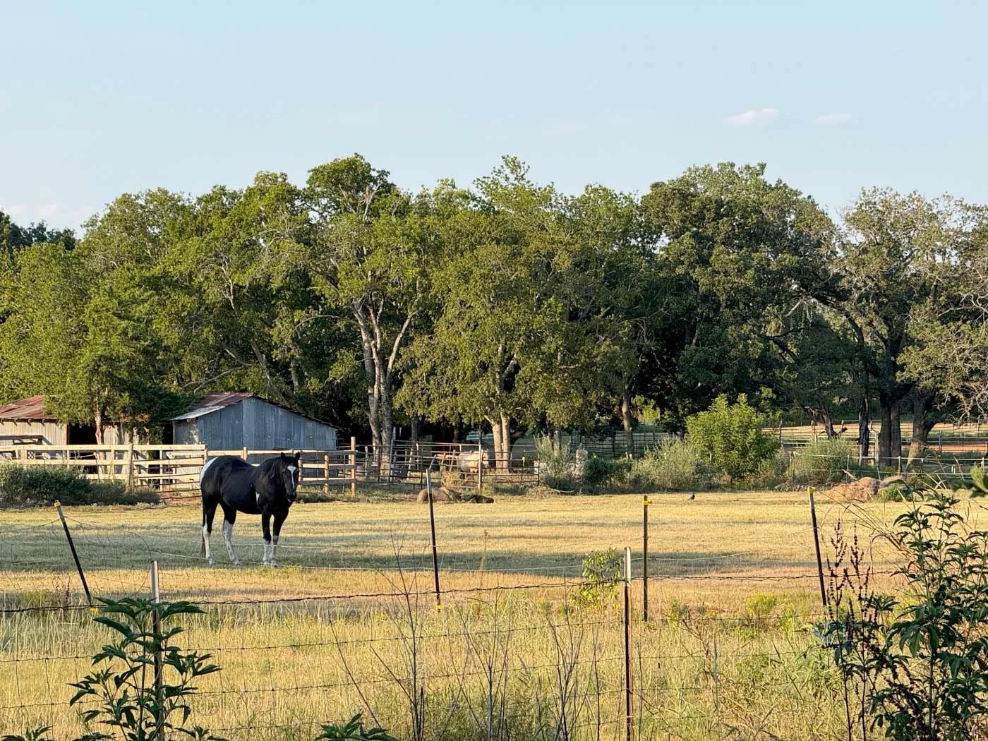 August 8, 2025 Friday - Guess what? Horse butt! Hahahaha. When we left the house for our evening walk, the neighbors were over near our fence. After our walk, I went in and grabbed my camera. By the time I got back out, they were still near enough for a few good photos, but this was the only one standing in the sun. I like how shiny he is.