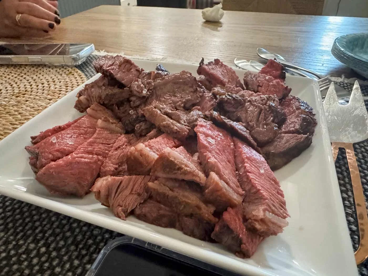 May 25, 2025 Sunday - Today was another really good day up north. It wasn’t just with my friend and his family this time, but there was still good food, good cigars, and good drinks. But lots more good friends. My cookie-making friend was there with her two girls too. This is the highlight of the meal: the picanha. My friend knows how to make this just right.