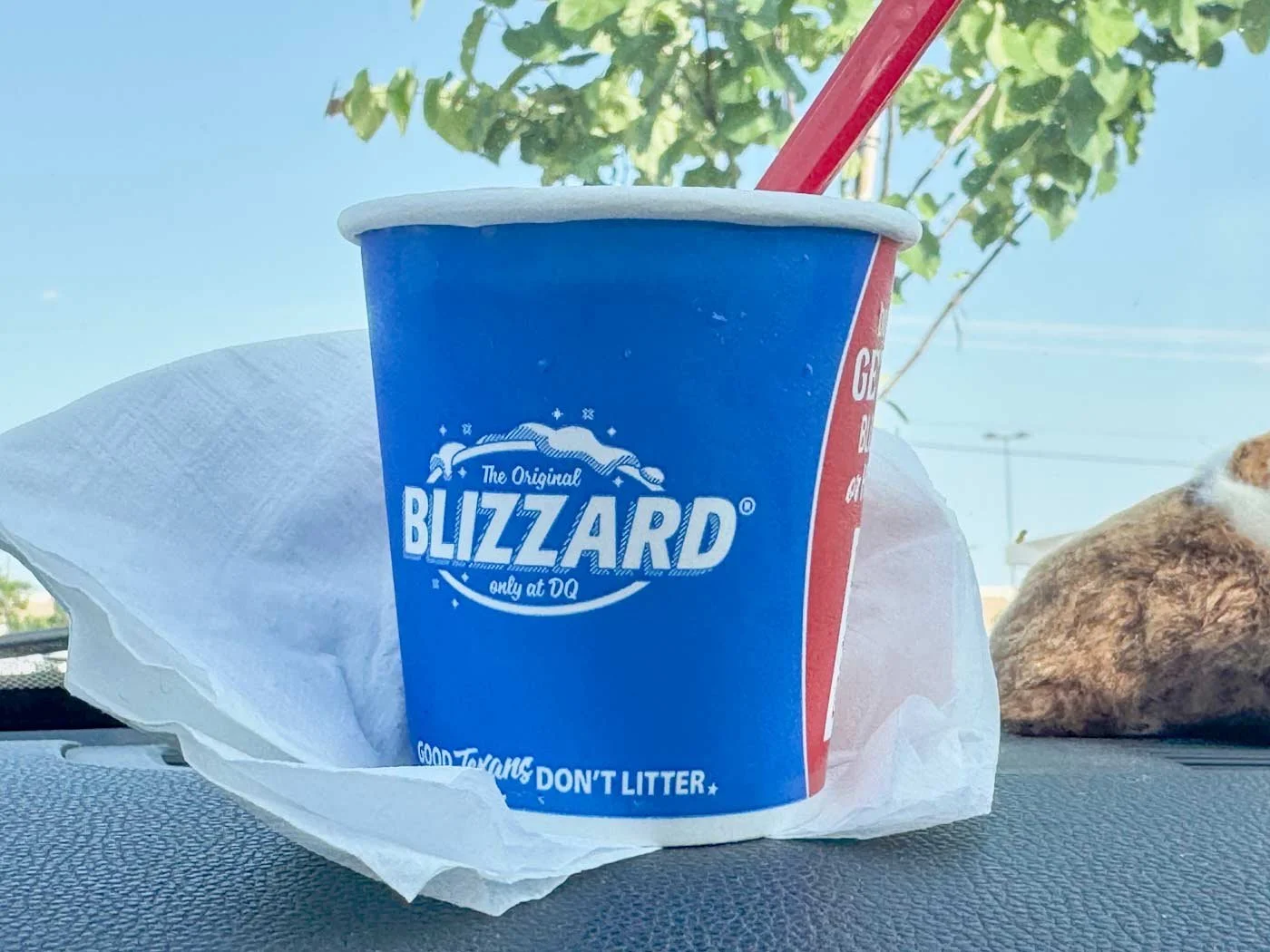 May 31, 2025 Saturday - After being gone almost all day yesterday and unexpectedly being gone for a bit this morning, I felt bad for the pups, so I took them out for dinner. I got them some little junior burgers, and they offered me pup cups for each of them. I asked for just one for them all to share. I got myself my own little banana split “pup cup”.