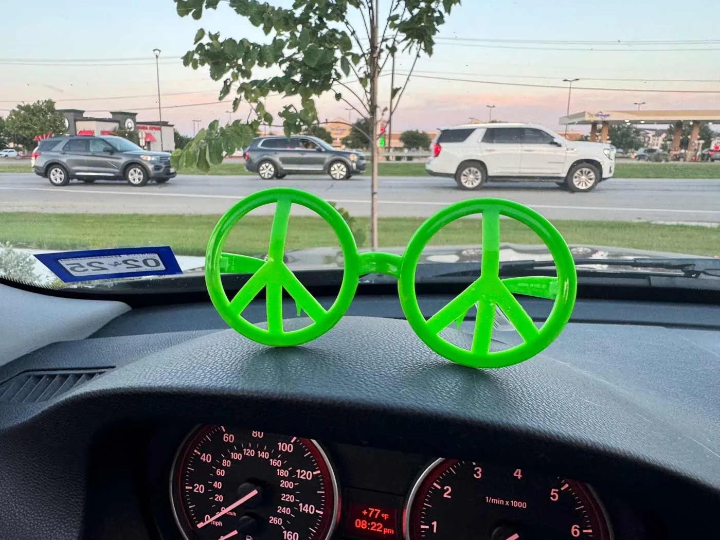 May 21, 2025 Wednesday - Today was pretty busy with work. By the time I was done, I didn’t feel like doing anything. We did our evening walk and then we went for a drive into town for dinner. I ordered the pups’ kid burgers and they misunderstood and gave me kid’s meals. They kept the fries and little drinks but forgot the prizes in the bag. I got a beach ball and these glasses. I’m working with Zak to get him to wear them.