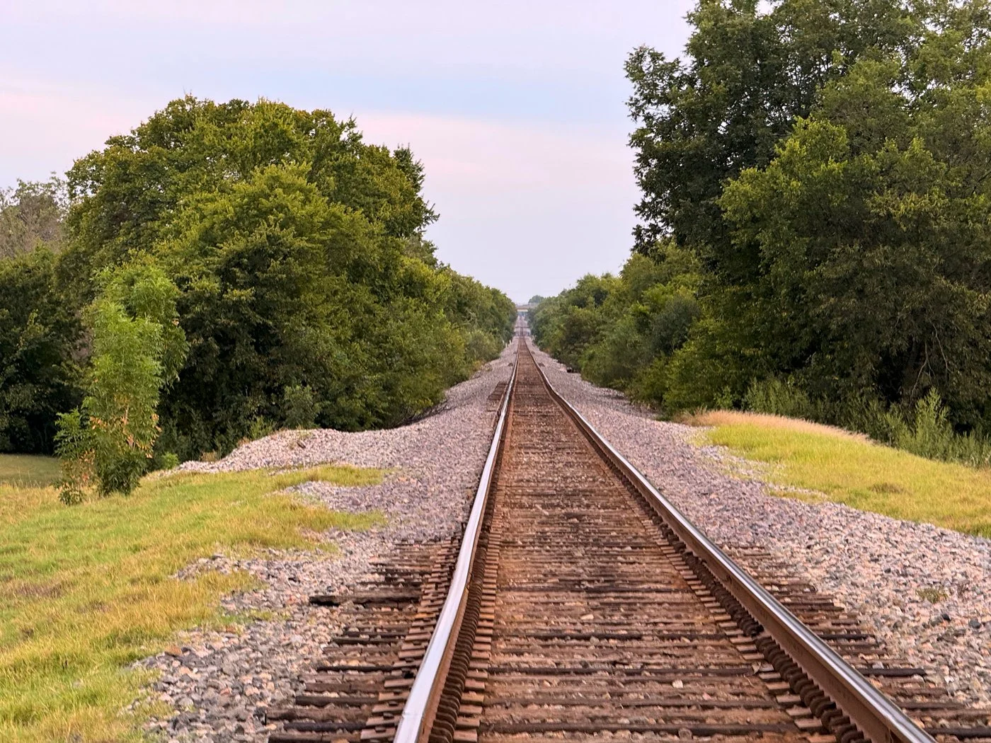 September 29, 2025 Monday - Today, my nephew, his wife, and my brother helped me empty my storage unit I’ve had since I moved out here to live with Dad. After all that was done, we all met for dinner in town. It’s always good getting to spend time with all of them. This is the railroad tracks that go through town. If I ever become a hobo, this will be where it starts.