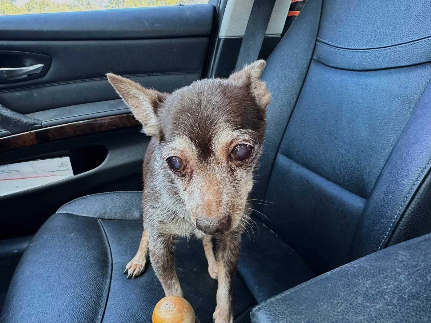 September 23, 2025 Tuesday - This is Dozer. I call him Little Killer, he’s been my photo of the day a few times over his long life. His was could have ended abruptly last night. He decided to run off during his bedtime walk. It was incredibly dark last night to fortunately for him, a kind lady picked him up about a half mile away. I got a call to pick up the fugitive this morning.