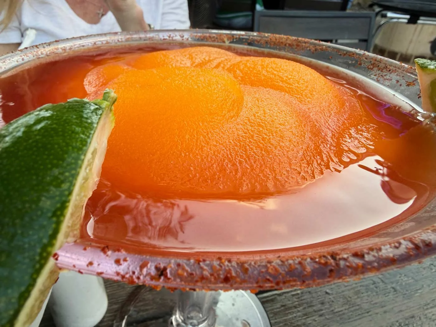 April 2, 2026 Thursday - Today, a friend I’ve not seen in a long while called me. She mentioned she had a hard day and could use a drink. We went to one of our favorite places and shared a big Attitude Adjustment with extra Tajín on the side. To be honest, having a big drink sounded like a really good idea to me too. Especially given it was great patio weather.