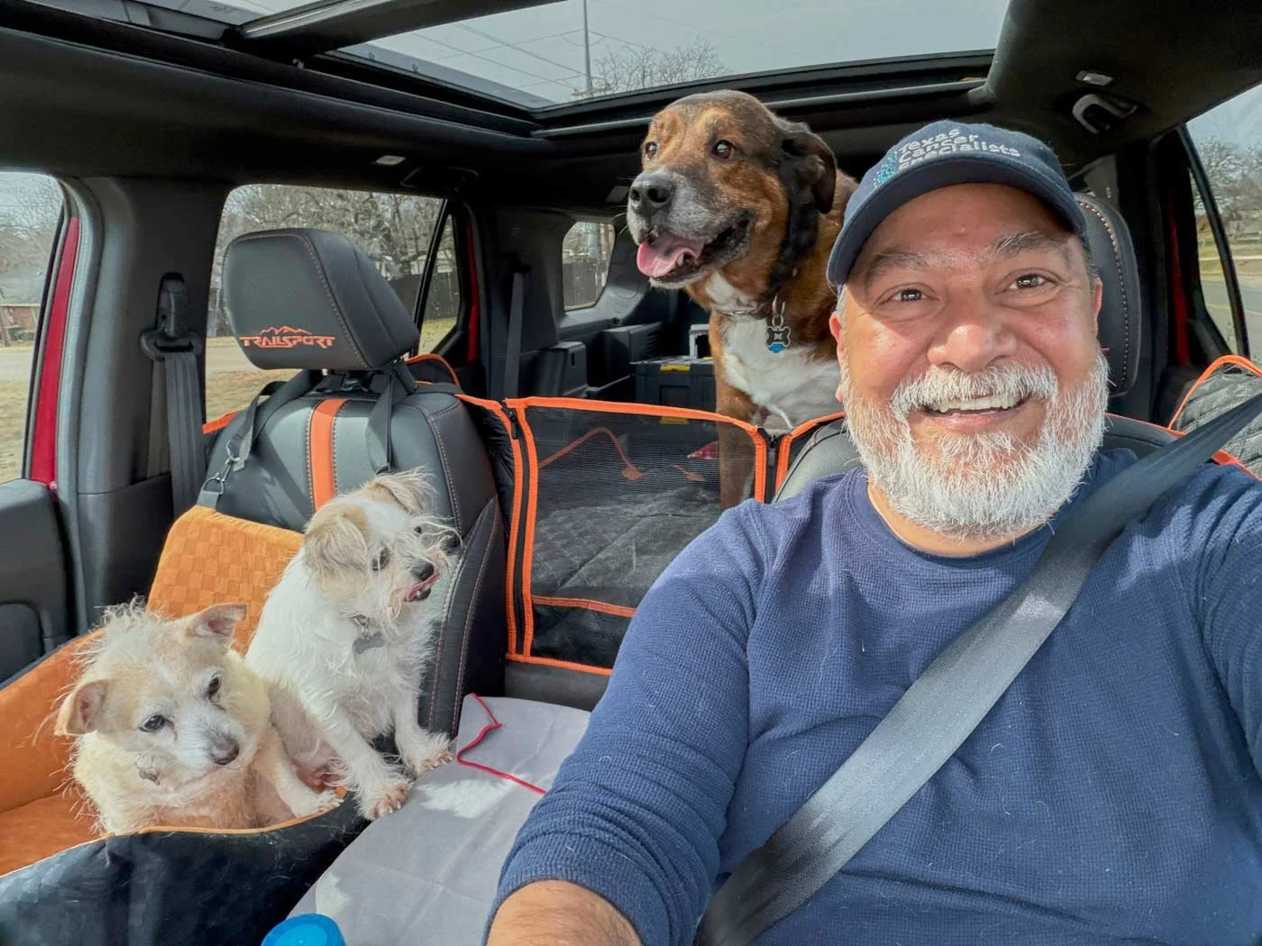 February 2, 2025 Monday - Today after work, I decided to take the pups with me to go get a new phone. Not that they had anything to do with it. We did also get the car washed, filled up with gas, and picked up dinner. They only had this orange color, so I’ll definitely be getting a case for this right away. I should be getting some good photos at the wedding.