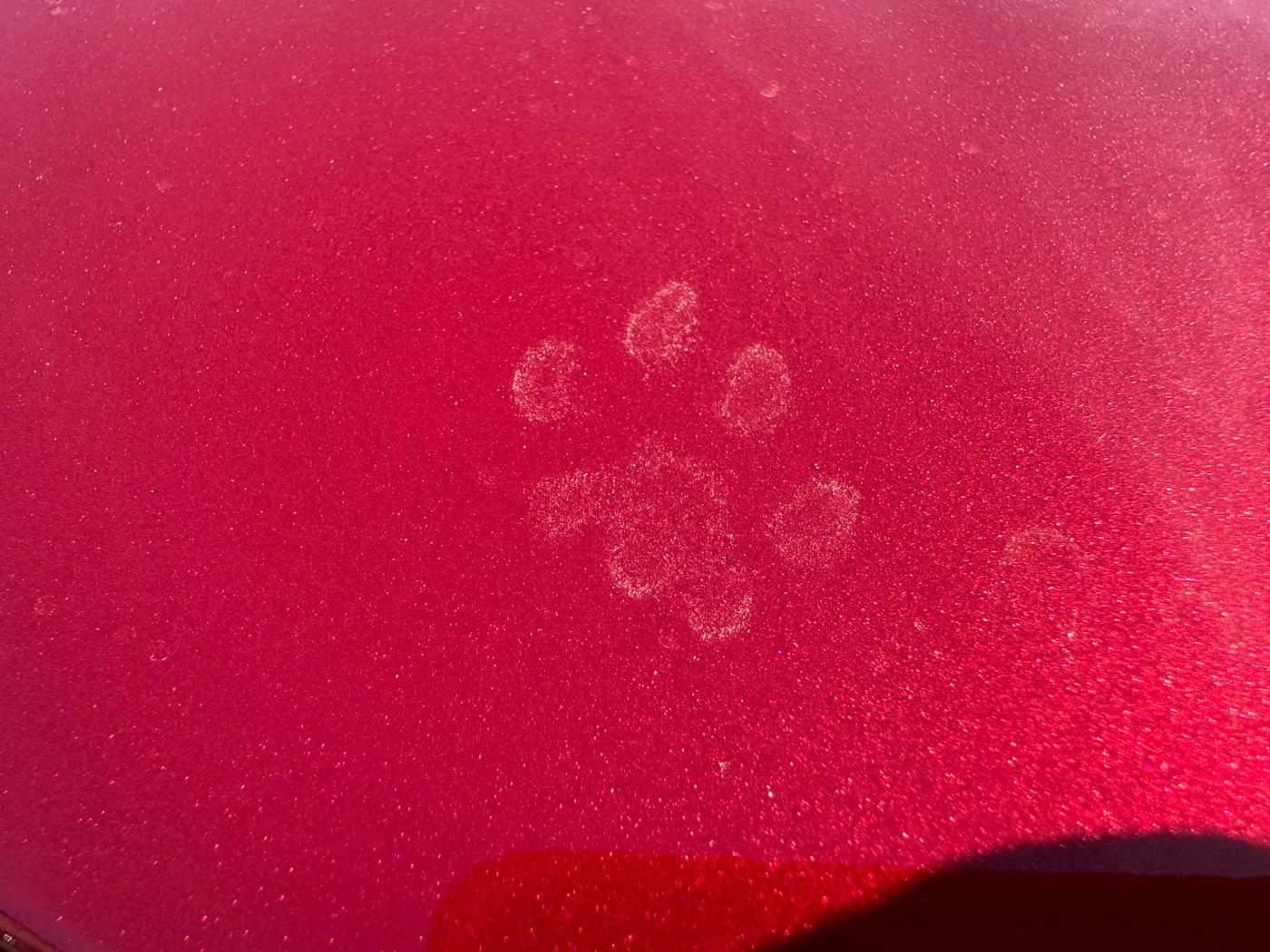 January 16, 2025 Friday - This is about 20 minutes after I washed my car. Shortly after I bought my new car, the person in charge of the roads extended the sides of a bunch of the roads out here with white gravel. My car will never be clean again. I washed the car on the way home, drove home, and then drove to Target. The water droplets on the back were covered in the dust and dried like this.