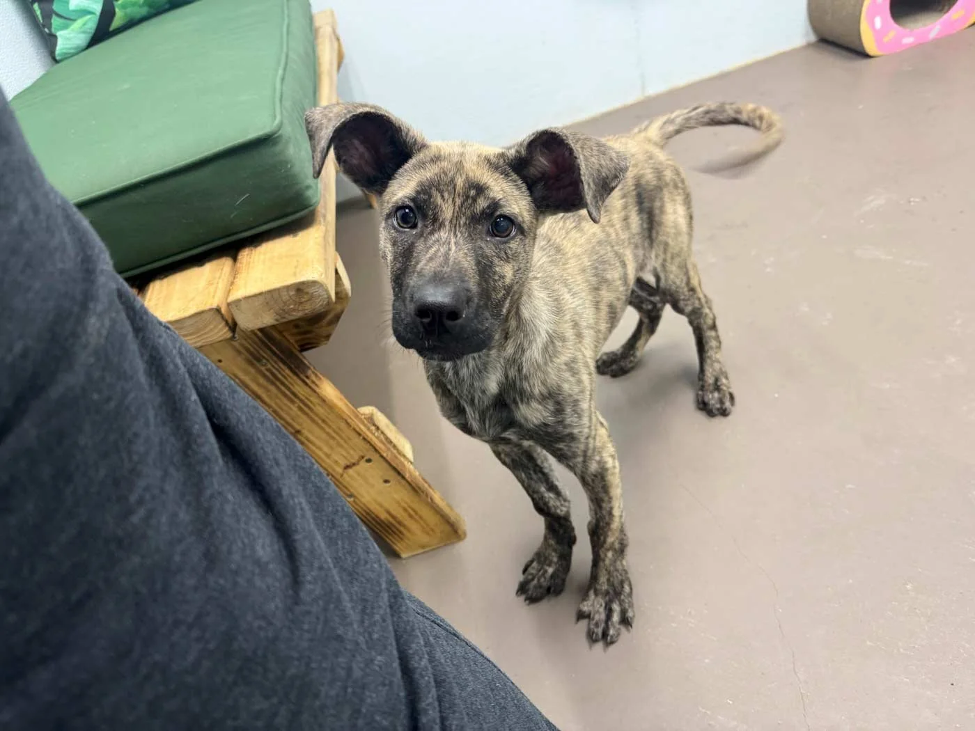 January 30, 2025 Friday - About 6 weeks ago, this brindle puppy was available for adoption. I was still thinking if I got another pup, I should wait until after the wedding. She’s available again; her family brought her back. I went to go see her today, and she’s so adorable. I’ve got my fingers crossed that she’s still available when I get back.