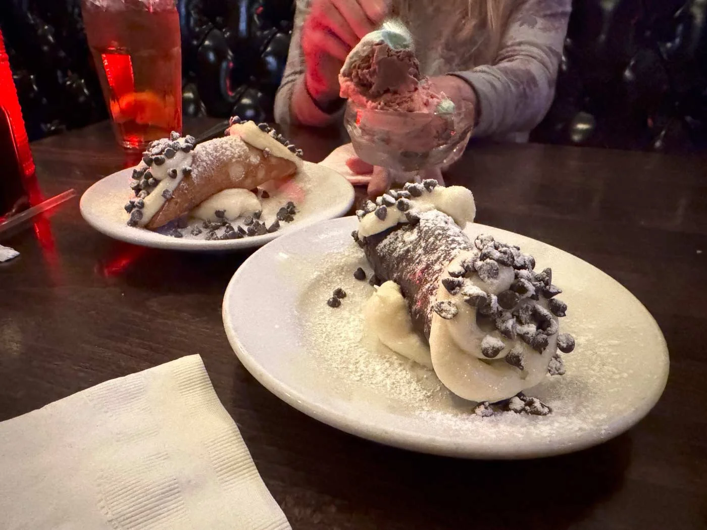 January 13, 2025 Tuesday - One of my good friend’s birthdays was in the middle of last month. We’re finally getting around to celebrating it and my half-birthday. We ordered cannoli for each of us, and then they surprised us with a dish of spumoni with a candle for her to make a wish. I wish there was one of these restaurants in Burleson.