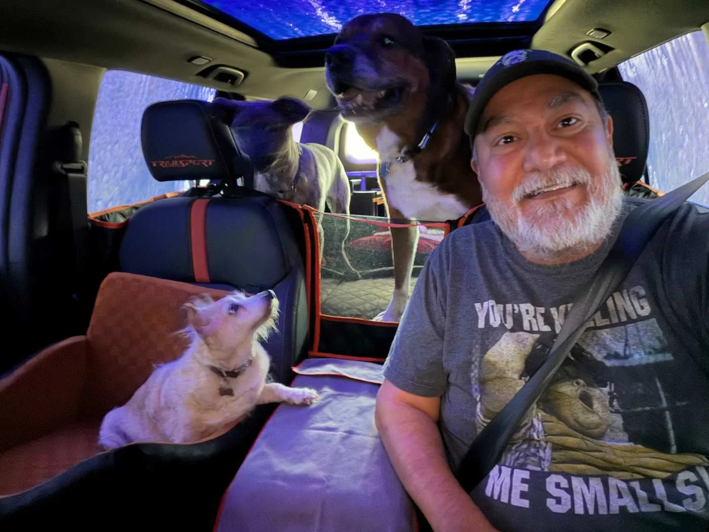 March 15, 2026 Sunday - Today I took the pups for a ride to run some errands. We went through the carwash, picked up my prescriptions at Kroger and then picked up lunch. This was our first ride without Biscuit. Pancake didn’t seem to want to ride in her seat. She kept hopping up to ride on the console. I think she just likes to see where we’re going. I think it was harder on me than them.